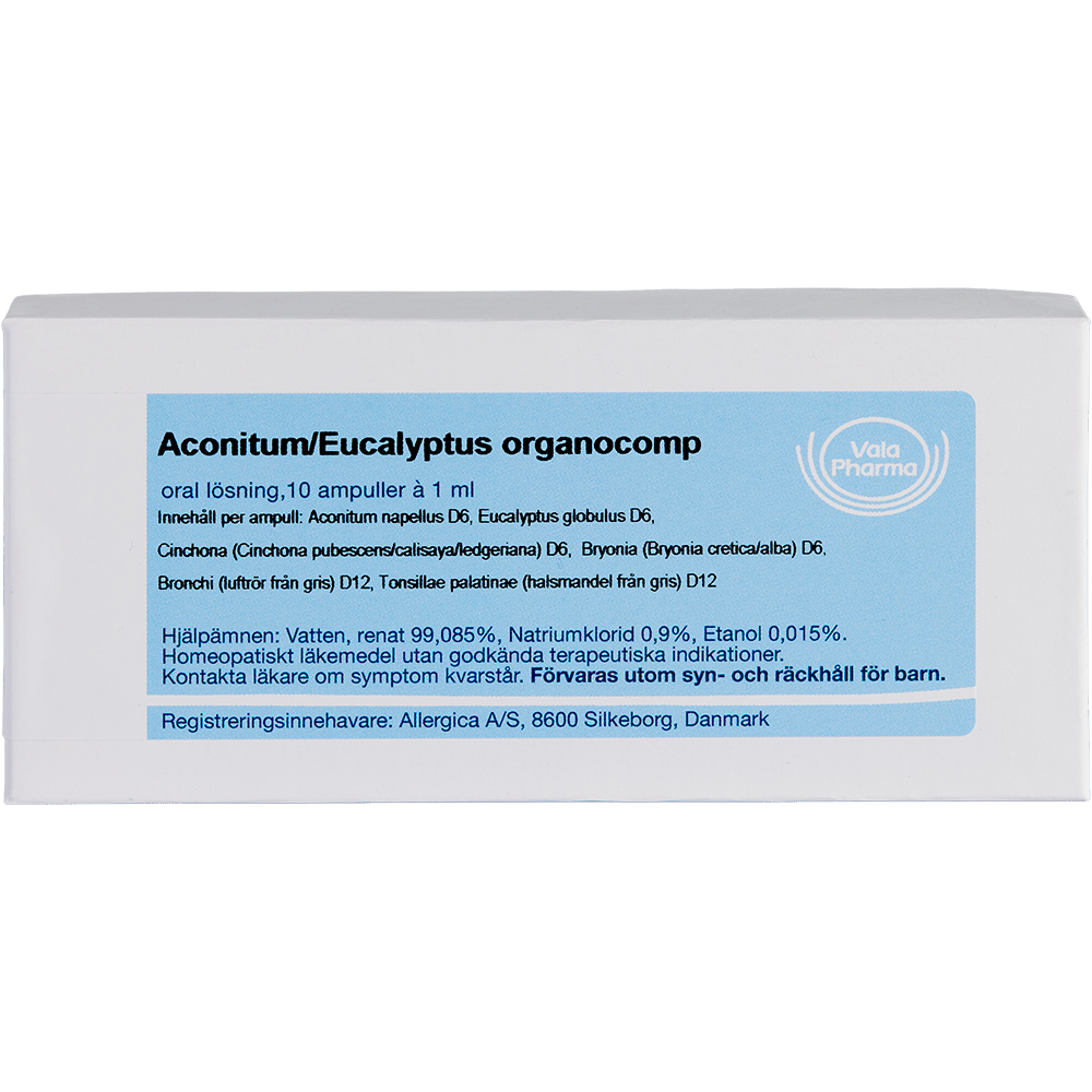 Aconitum/Eucalyptus organocomp. er et homøopatisk lægemiddel, hvis sammensætning bygger på omfattende erfaring og lang tids anvendelse.